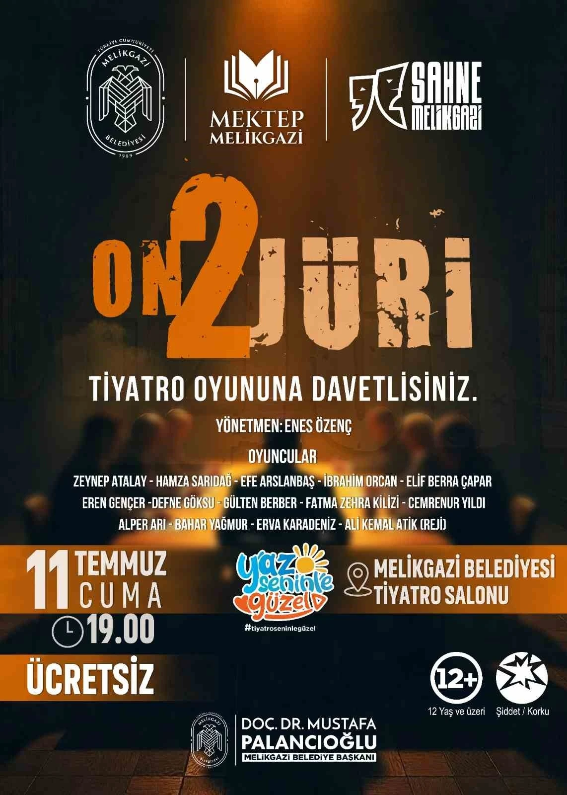 Kültüre, sanata ve sanatçıya değer veren, birbirinden renkli ve farklı kültürel etkinlikleri vatandaşlarla buluşturan Melikgazi Belediyesi, Sahne Melikgazi kapsamında ‘12 Jüri’ adlı tiyatro oyunu düzenleyecek.