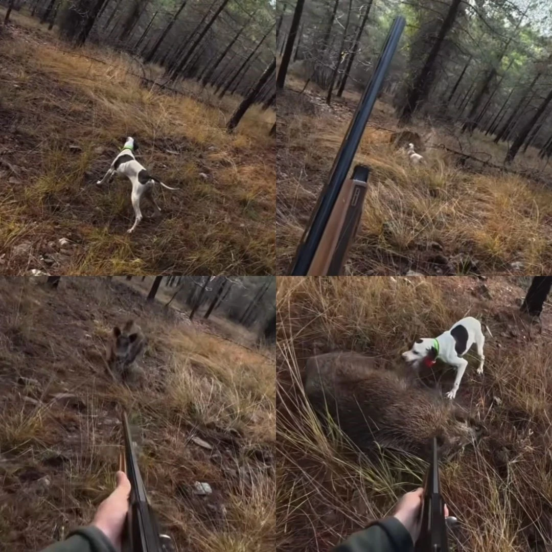 Avcı Öncüt’ün kask kamerasına yansıyan görüntülerde, köpeğin çalılık alanda ferma vermesi, hemen ardından yaban domuzunun aniden ortaya çıkarak koşması ve avcının panik içinde ateş açtığı anlar yer aldı.