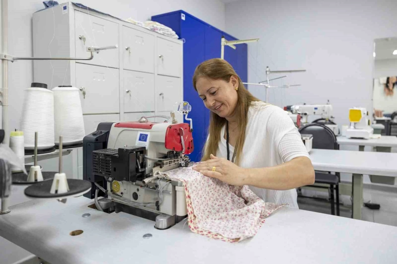 Mersin Büyükşehir Belediyesinin Halkkent MERCEK Merkezi’nde verilen ‘Giyim Üretim Teknolojileri’ kursları, kadınlara meslek kazandırıyor. 3 çocuk annesi Hatice Sandal, kurs sayesinde hem ev ekonomisine katkı sağlıyor hem de kendi atölyesini kurma yolunda ilerliyor.