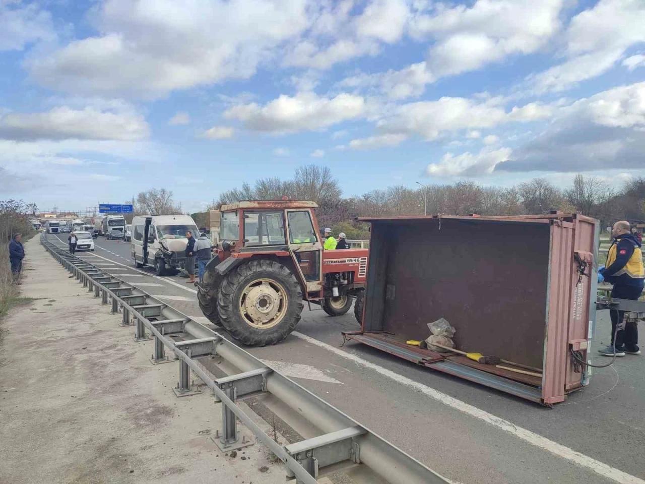 Alınan bilgiye göre, Tekirdağ’dan Gelibolu yönüne giden M.Ç. yönetimindeki yolcu midibüsü, S.Ü. yönetimindeki 22 FP 243 plakalı traktöre bağlı römorka arkadan çarptı. Çarpmanın etkisiyle römork yan yatarken, midibüsteki 1 yolcu yaralandı. İhbar üzerine kaza yerine sağlık ve polis ekipleri sevk edildi. Yaralı, ambulansla kaldırıldığı Keşan Devlet Hastanesi’nde tedavi altına alındı.