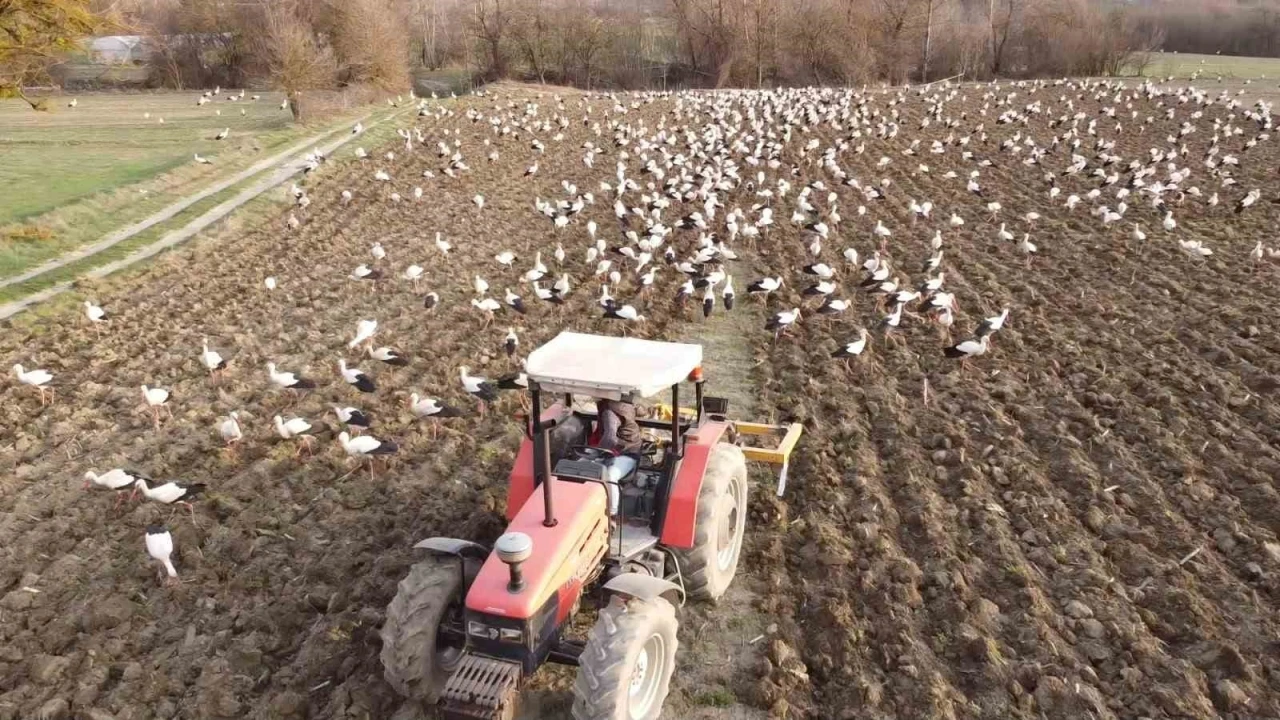 Bolu’da baharın müjdecisi yüzlerce leylek, mola verdikleri 5 dönümlük tarlada adım atacak yer bırakmadı.