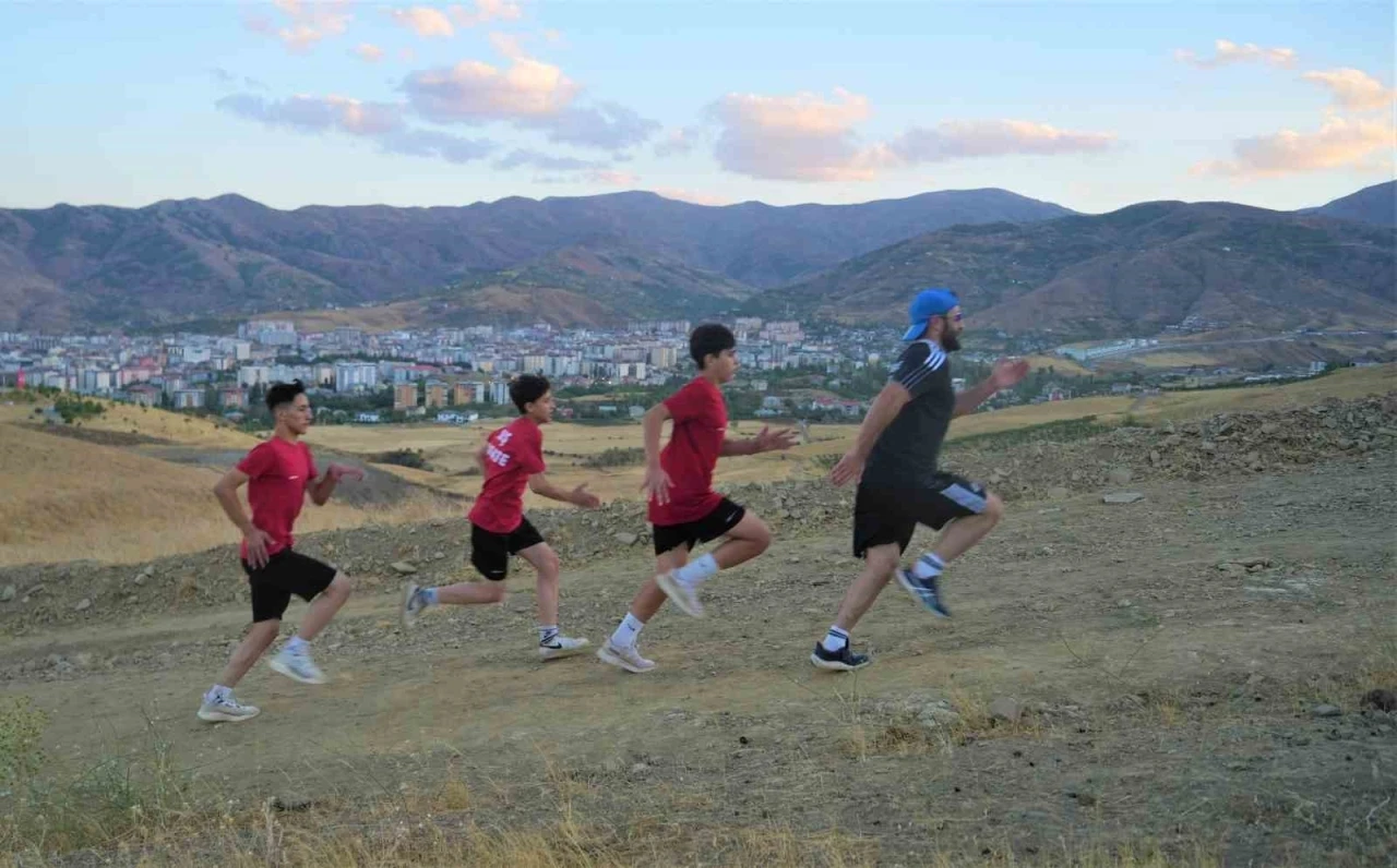 Muş’ta karate sporcuları, şampiyonalara hazırlık kapsamında dağ koşusu yaparak form tutuyor.