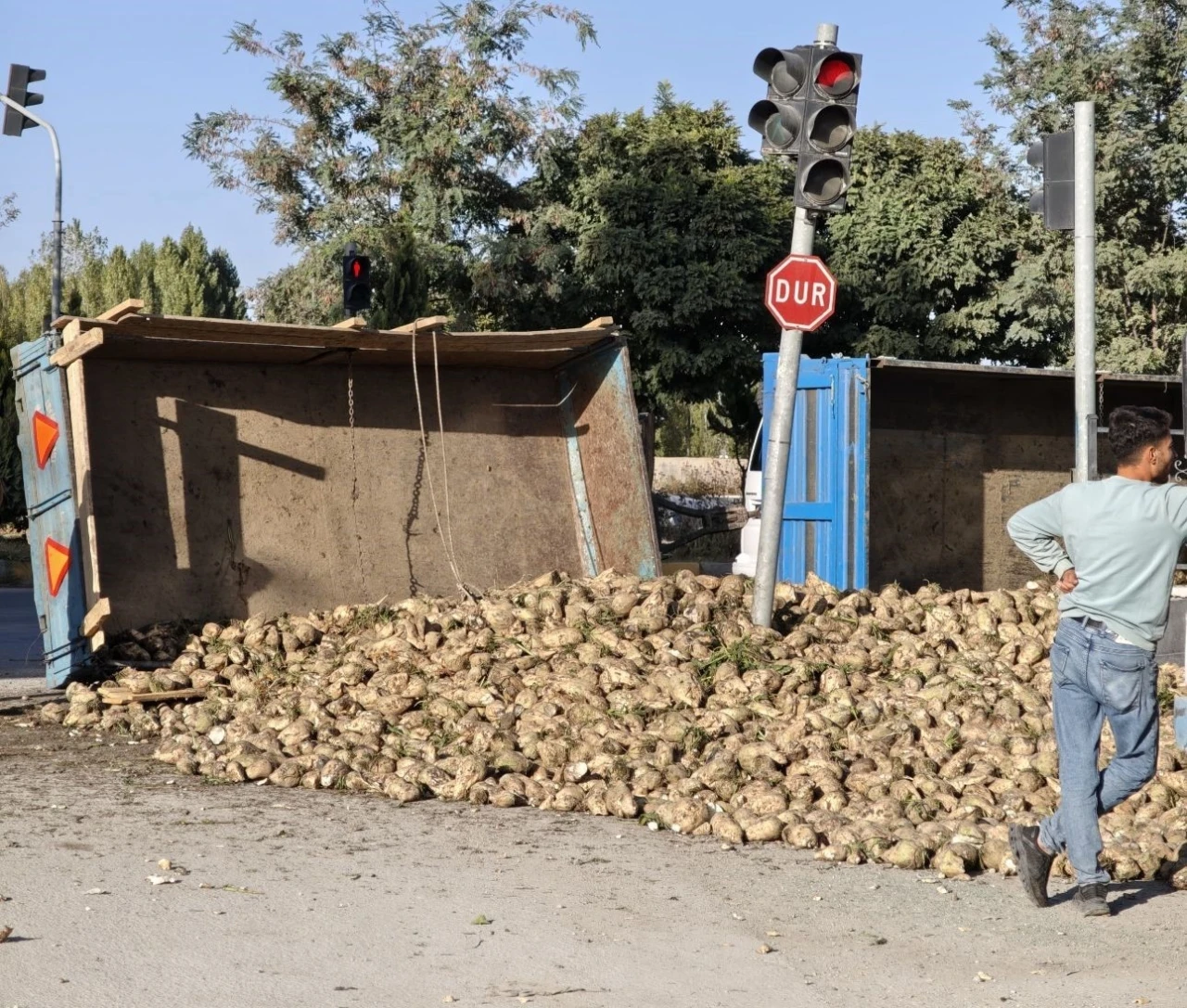 Edinilen bilgilere göre, sürücüsünün ismi öğrenilemeyen şeker pancarı yüklü traktör, Muş Sanayi Kavşağı’nda sürücünün direksiyon hâkimiyetini kaybetmesi sonucu devrildi. Kazanın ardından traktörde bulunan pancarlar yola savrulurken, olay yerine polis ekipleri sevk edildi. Herhangi bir can kaybı ya da yaralanma yaşanmayan kazada, trafik akışı bir süre kontrollü olarak sağlandı.