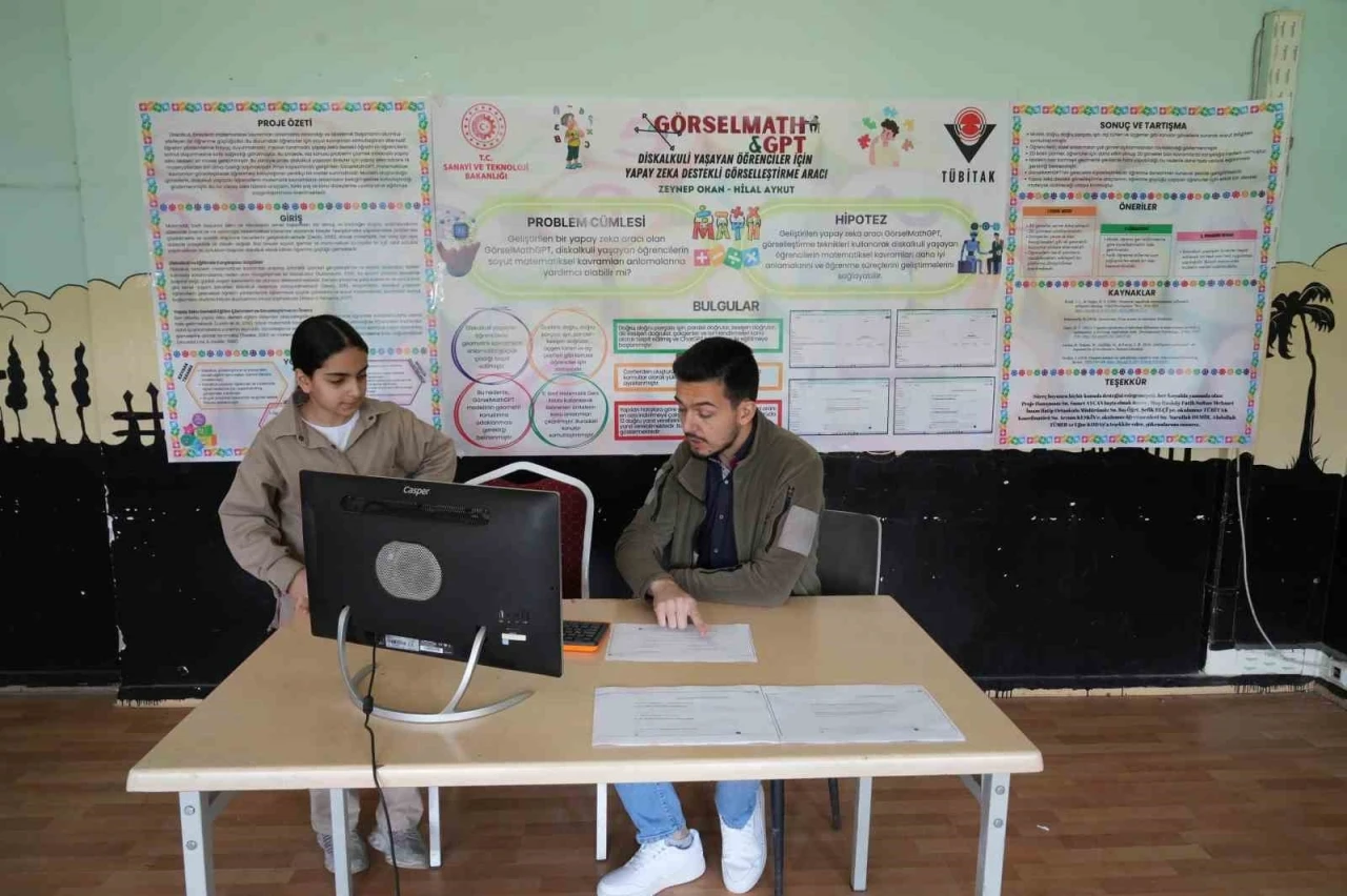 Matematik öğretmeni Samet Aycan rehberliğinde 5. sınıf öğrencileri Zeynep Okan ve Hilal Aykut’un geliştirdiği "GörselMathGPT" adlı yapay zeka tabanlı eğitim aracı, matematikte özellikle geometri konularında zorluk çeken diskalkuli tanılı öğrencilere umut oldu. Proje, soyut kavramların anlaşılmasını kolaylaştırmayı amaçlıyor.