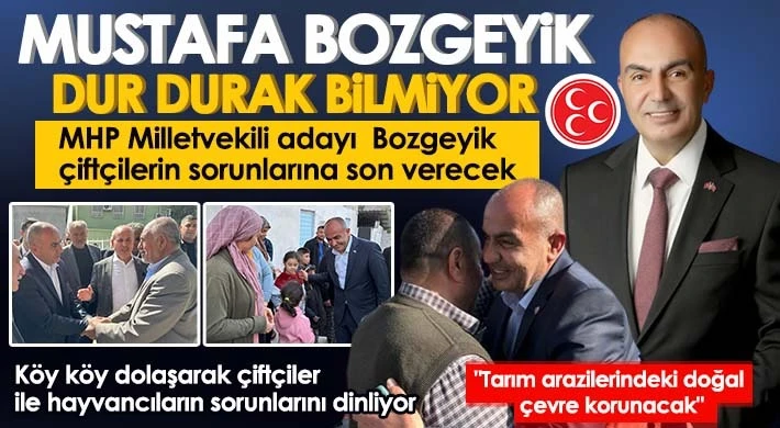 Gaziantep'te tarım ve hayvancılığının en çok yapıldığı Oğuzeli, Karkamış ve Nizip ilçelerindeki tüm köyleri gezerek projelerini anlatan MHP Gaziantep Milletvekili adayı Mustafa Bozgeyik, ziyaret ettiği bölgelerdeki vatandaşların da ilgi odağı haline geliyor.