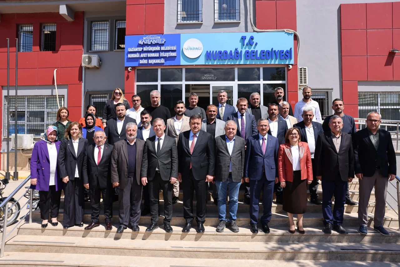 Yerel Yönetimler Başkan Yardımcısı Bilal Uçar, İl Başkanı Fatih Muhaddis Fedaioğlu, Gaziantep Büyükşehir Belediye Başkanı Fatma Şahin, Nurdağı İlçe Başkanı Mustafa Yiğit ve il-ilçe yönetim kurulu üyeleri, Nurdağı Belediye Başkanı Mehmet Yıldırır’ı makamında ziyaret etti.