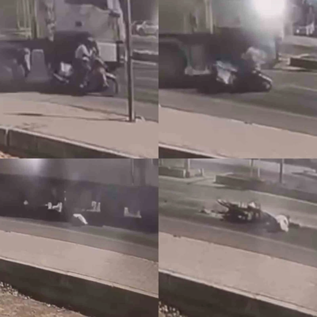 Mersin’in Erdemli ilçesinde kamyonunun altında kalan motosiklet sürücüsü yaralandı. Kaza anı saniye saniye güvenlik kamerasına yansıdı.