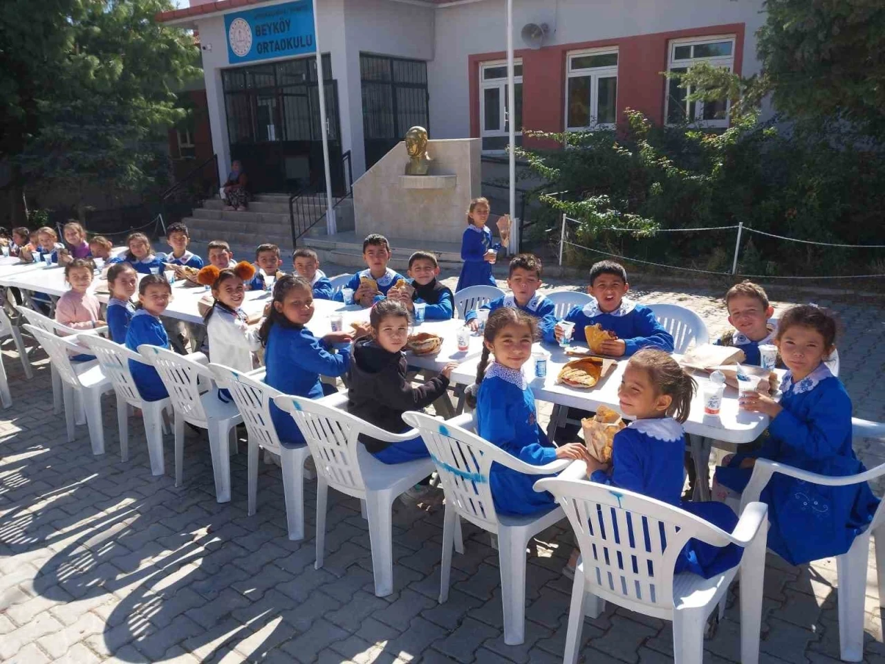 Afyonkarahisar İhsaniye Beyköy Ortaokulu yönetici ve öğretmenleri, öğrenciler için kendi imkanlarıyla düzenledikleri sucuk ekmek etkinliğiyle çocukları sevindirdi.