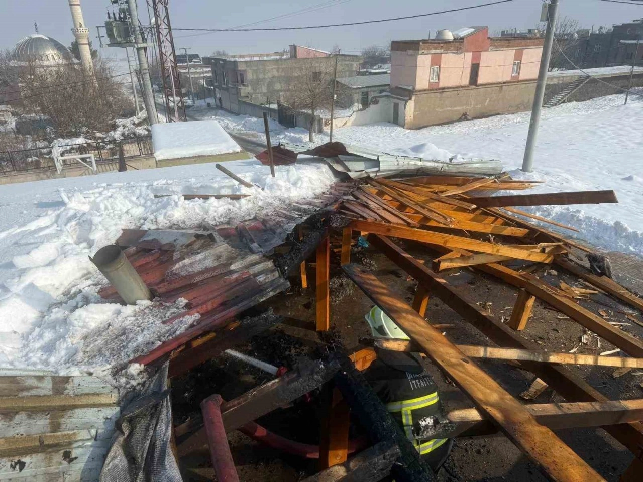 Diyarbakır’ın Çınar ilçesinde bir okulda sobadan çıkan kıvılcımla çatıda çıkan yangın büyümeden söndürüldü.