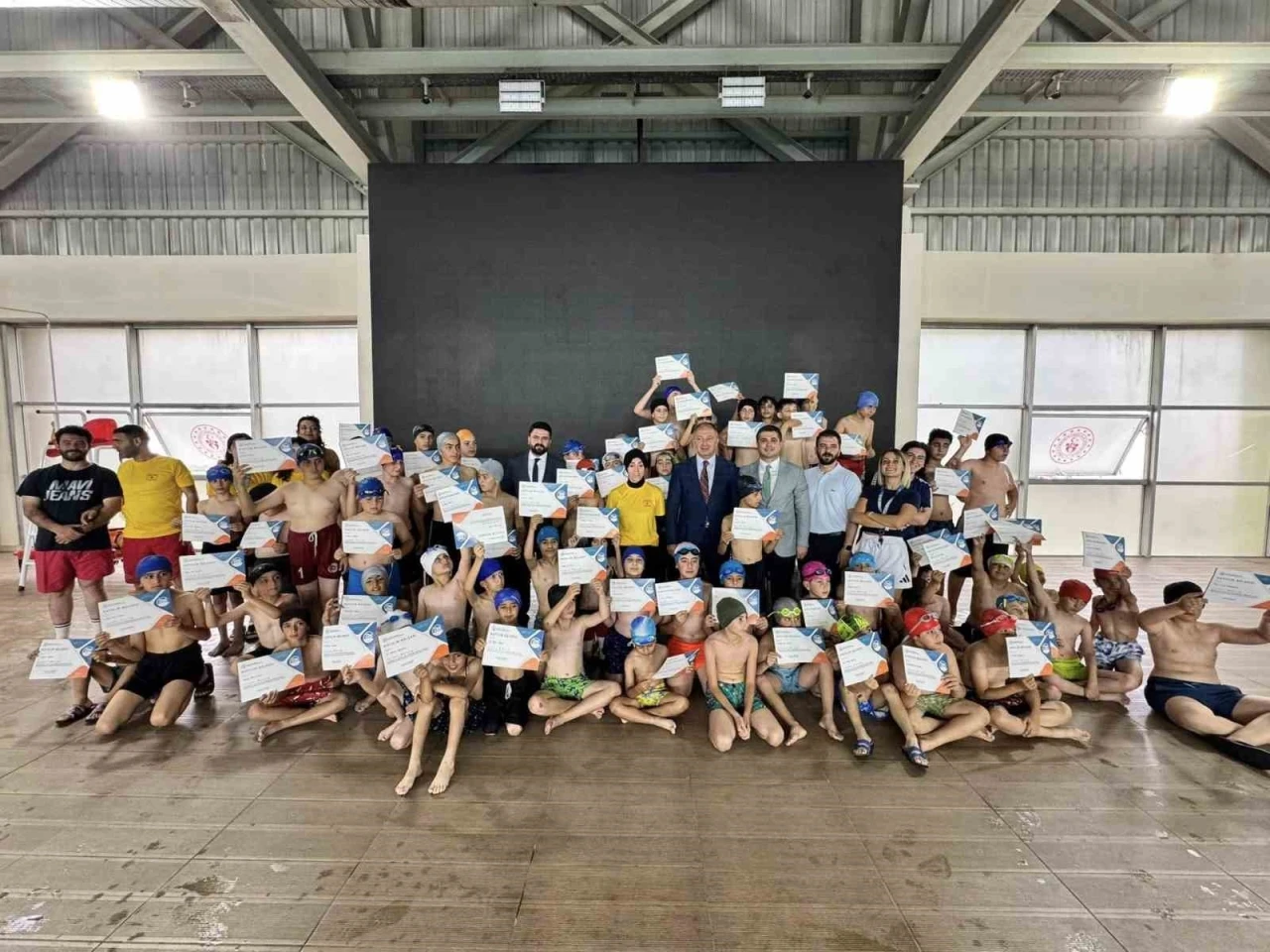Gençlik ve Spor Bakanlığı tarafından düzenlenen ve Milli Eğitim Bakanlığı’nın da destek verdiği ‘Yüzme Bilmeyen Kalmasın’ Projesi kapsamında yüzme eğitimi alan ve yüzmeyi öğrenen öğrencilere sertifikaları verildi.