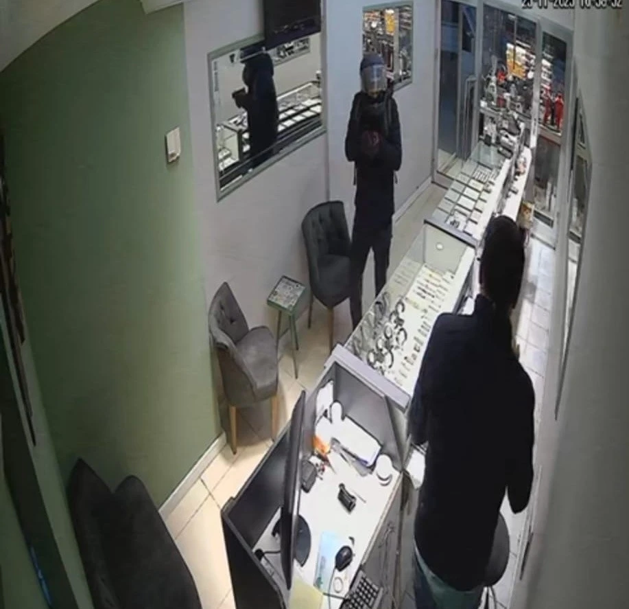 Soygun anı güvenlik kameralarına da yansıdı. Görüntülerde zanlının dükkana girişi, altınların çantaya doldurulması ve çalışanın bağlanması net bir şekilde görülüyor.