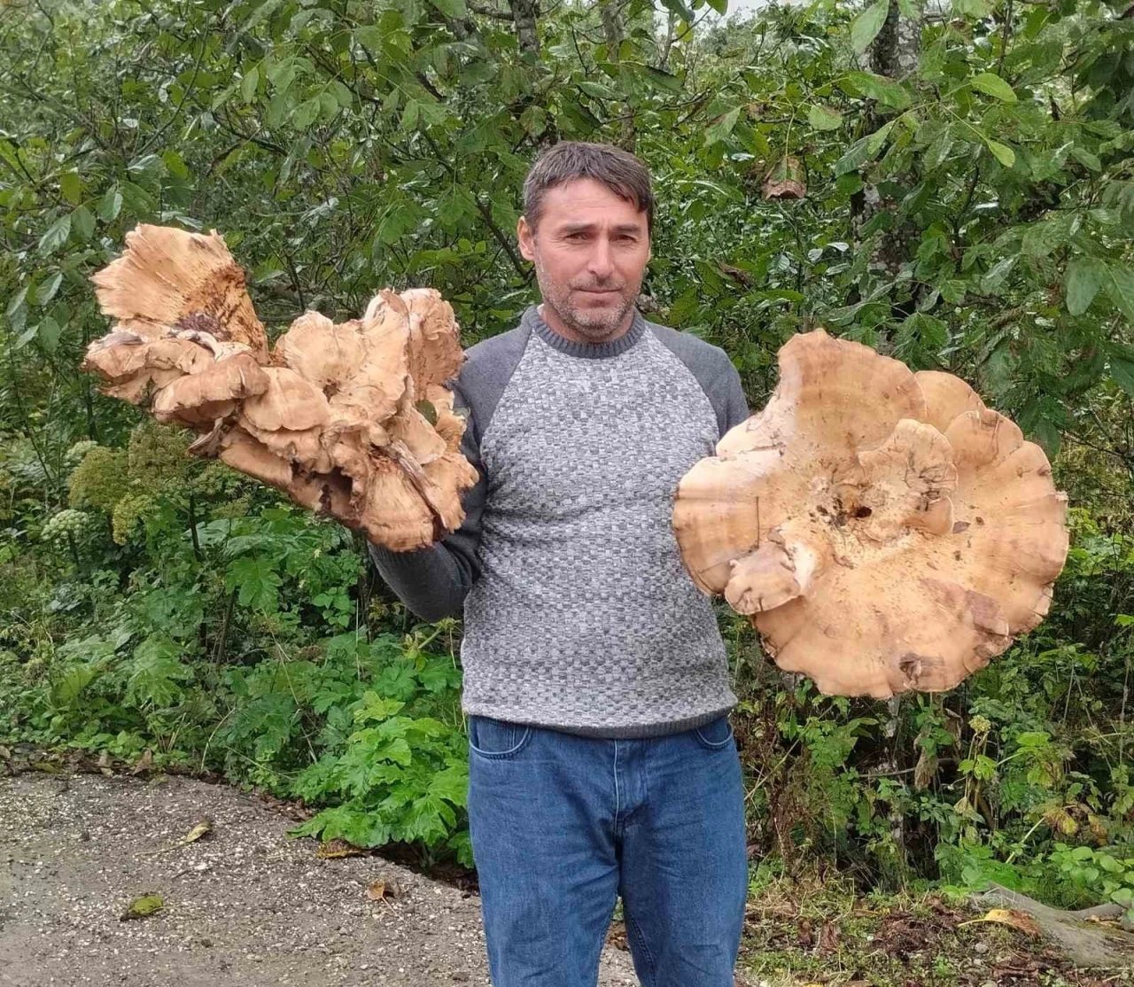 Ordu’nun Akkuş ilçesinde ailesiyle orman gezisine çıkan bir vatandaş, 3 kilo ağırlığında dev mantarlar buldu.