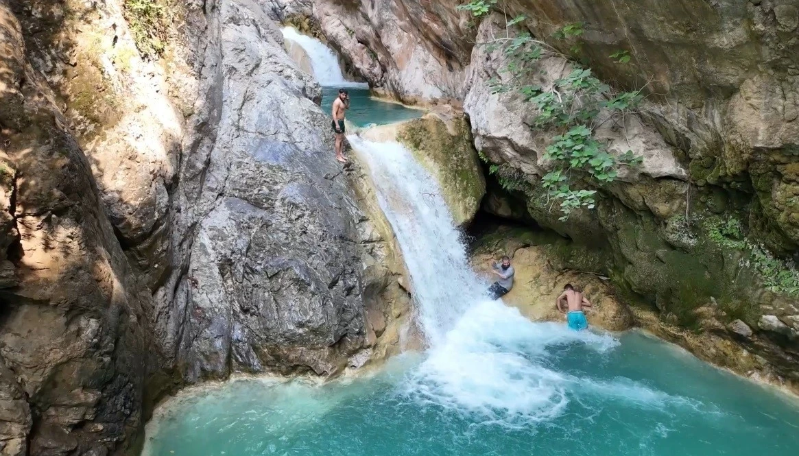 Osmaniye’de etkisini artıran sıcak hava nedeniyle bunalan vatandaşlar, Sarısu Şelalesi’nde serinledi.