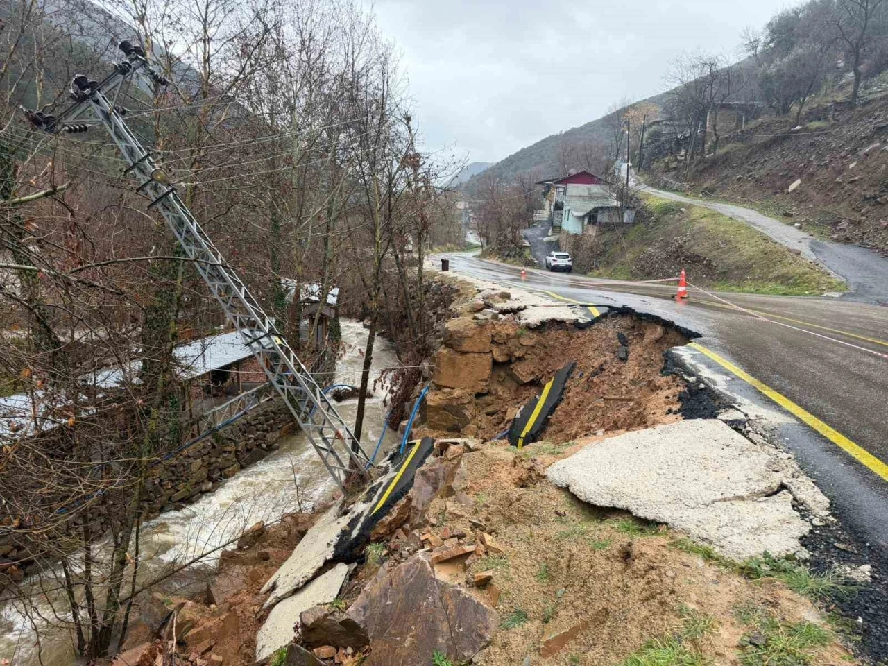Ekiplerin; göçüğün giderilmesi, elektrik hattının güvenli hale getirilmesi ve yolun yeniden ulaşıma açılması için çalışmalarını aralıksız sürdürdüğü öğrenildi. Yetkililer, vatandaşların uyarılara dikkat etmelerini ve alternatif güzergahları kullanmalarını istedi.