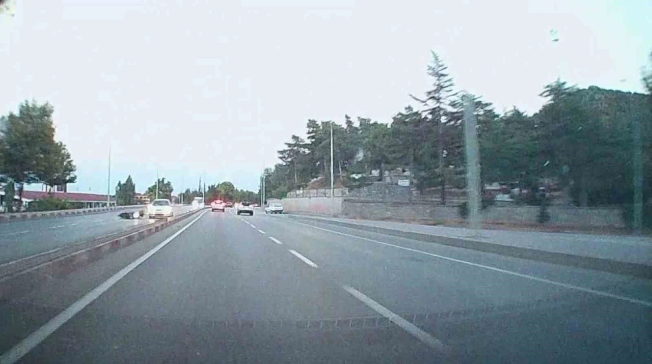 Afyonkarahisar’da otomobilinin çarpması sonucunda yerde sürüklenen motosikletlinin yaralandığı kaza bir araç kamerası ile görüntülendi.