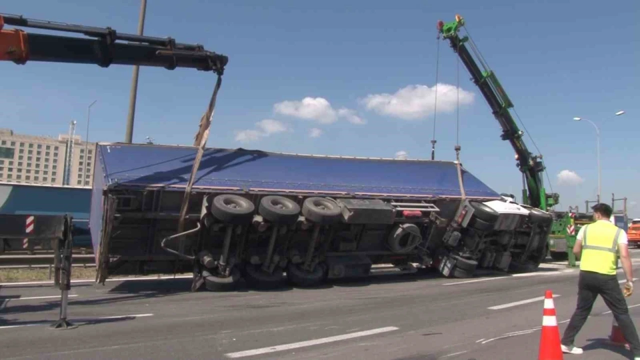 Pendik TEM Otoyolu’nda devrilen tır kaldırıldı