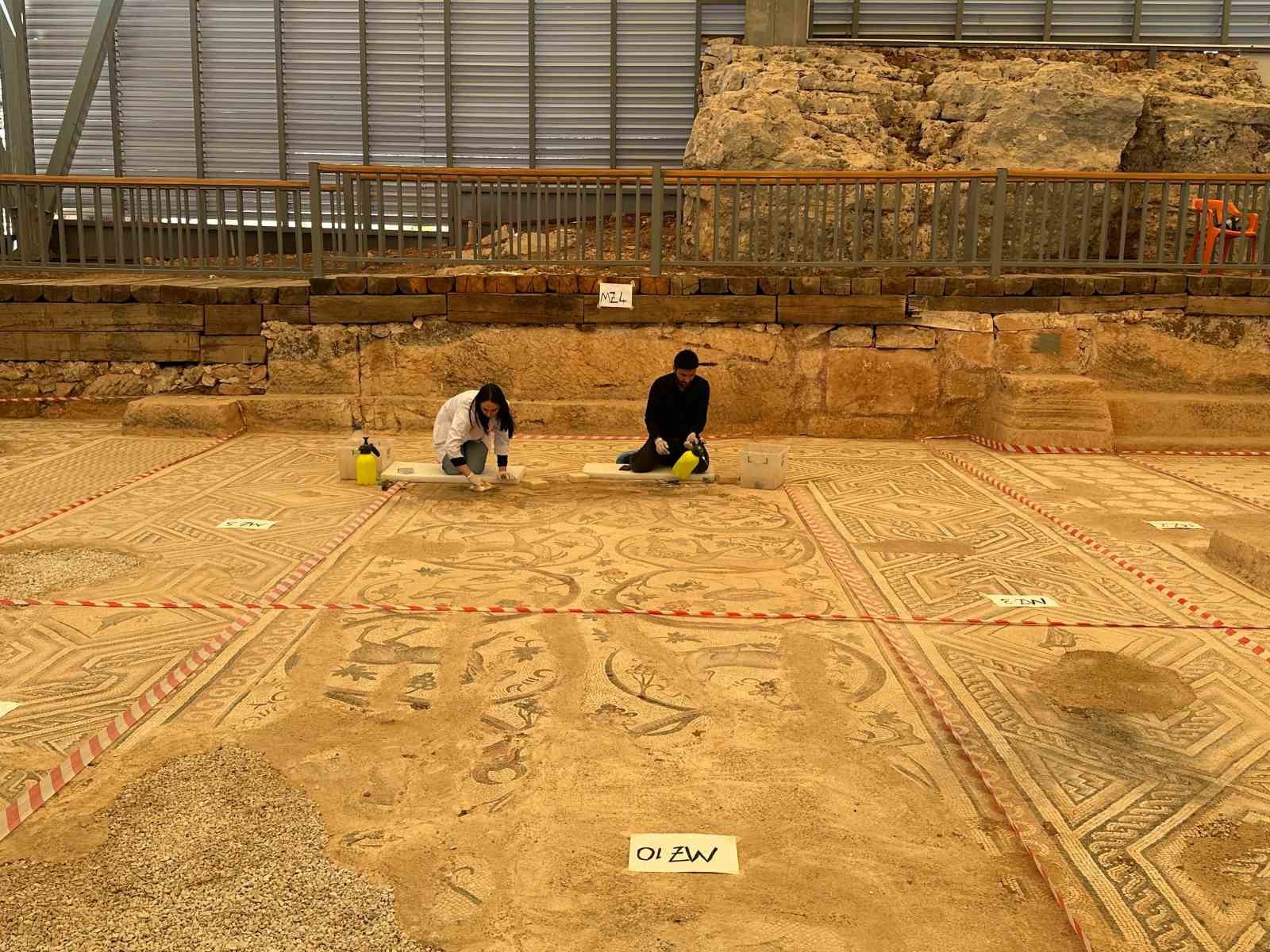 Adıyaman Müze Müdürü Mehmet Alkan, Gaziantep Restorasyon Konservasyon Bölge Müdürlüğü'nün yürüttüğü çalışmalardan bahsederken, restorasyonun Adıyaman Müze Müdürlüğü restoratörleri tarafından devam ettiğini belirtti. Restoratör Mikail Çelebi, mozaikteki kalker birikintilerinin su ve özel aletler kullanılarak temizlendiğini ifade etti. Çalışmaların yaklaşık iki ay sürmesi planlanıyor ve tamamlandığında mozaik, yeniden ziyaretçilerini ağırlayacak.