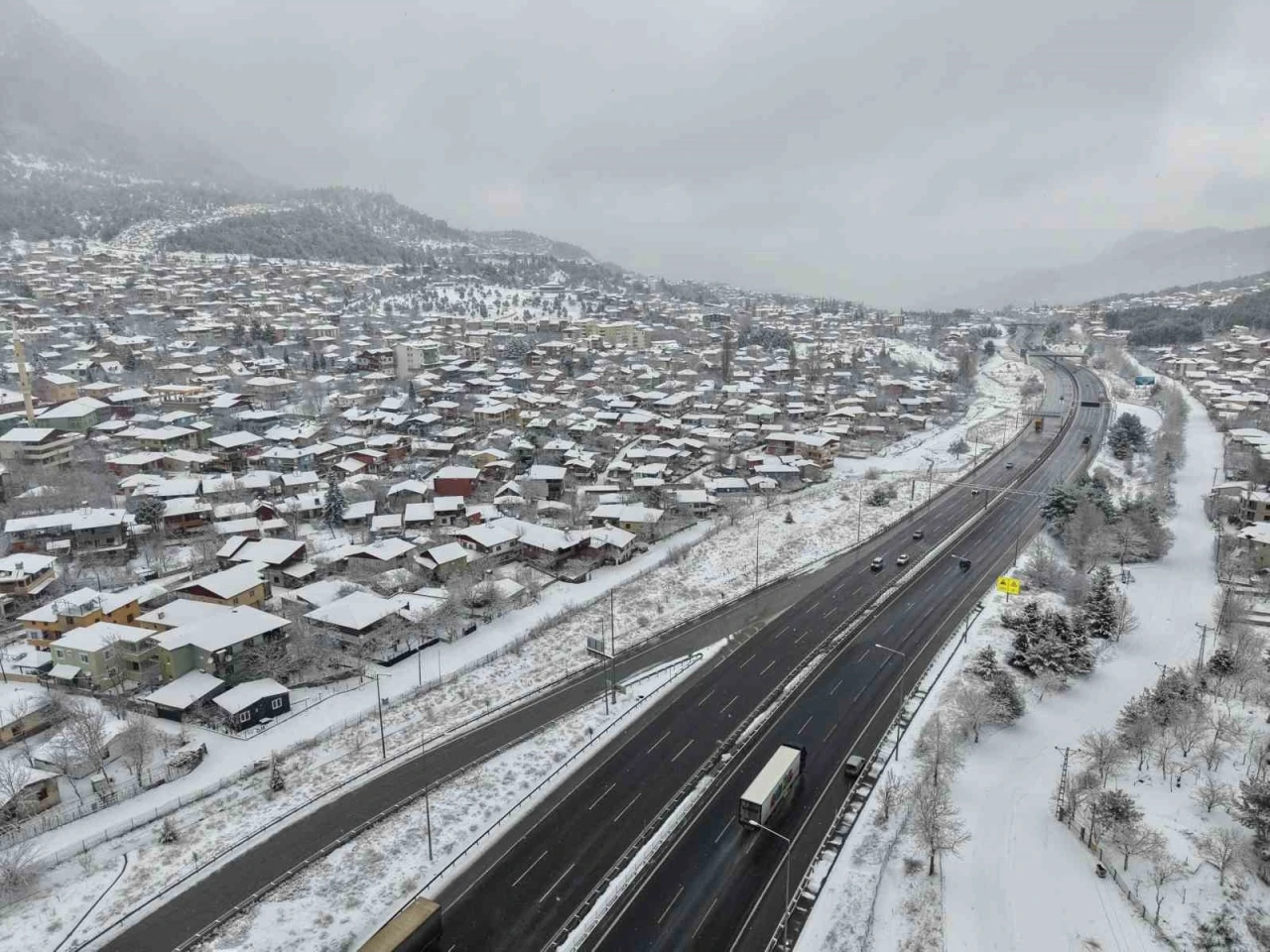 Adana’nın Pozantı ilçesi kar yağışıyla birlikte beyaza büründü.