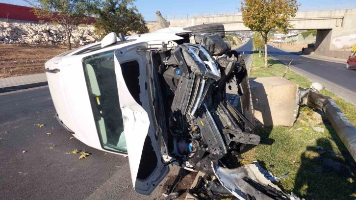 Gaziantep'in nizip ilçesinde sürücüsünün direksiyon hakimiyetini kaybettiği hafif ticari araç, savrulduktan sonra orta refüje çarparak yan yattı. Aracın hurda haline geldiği kazada 1 kişi yaralandı.