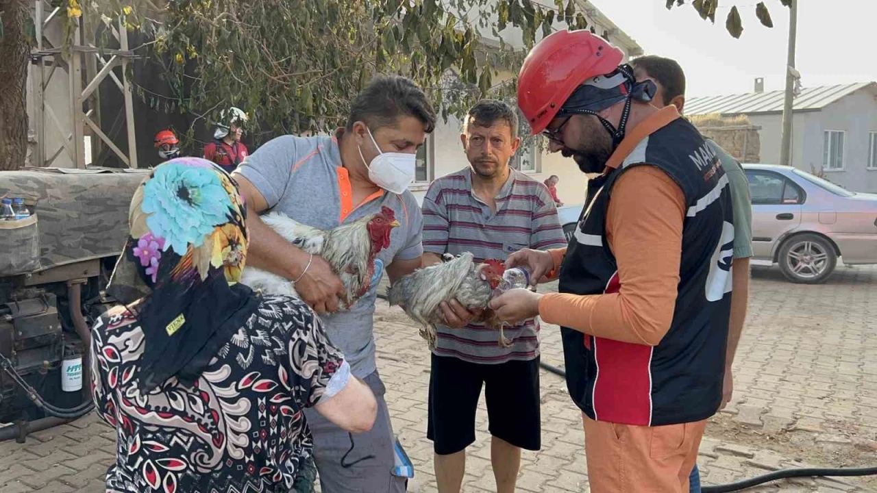 Saçaklı köyünde yaşayan vatandaşlar tahliye edilirken, yangın nedeniyle çok sayıda ev tamamen kullanılamaz hale geldi. Evi ve damı kullanılmaz hale gelen Birgül Civir sabah saatlerinde geri döndüğünde ise damda hayata tutunan tavuklarını gördü. Civir, dumandan etkilenen tavukları için ekipler ve gönüllülerden yardım istedi. Çevredekiler Civir’in tavukları için seferber oldu.