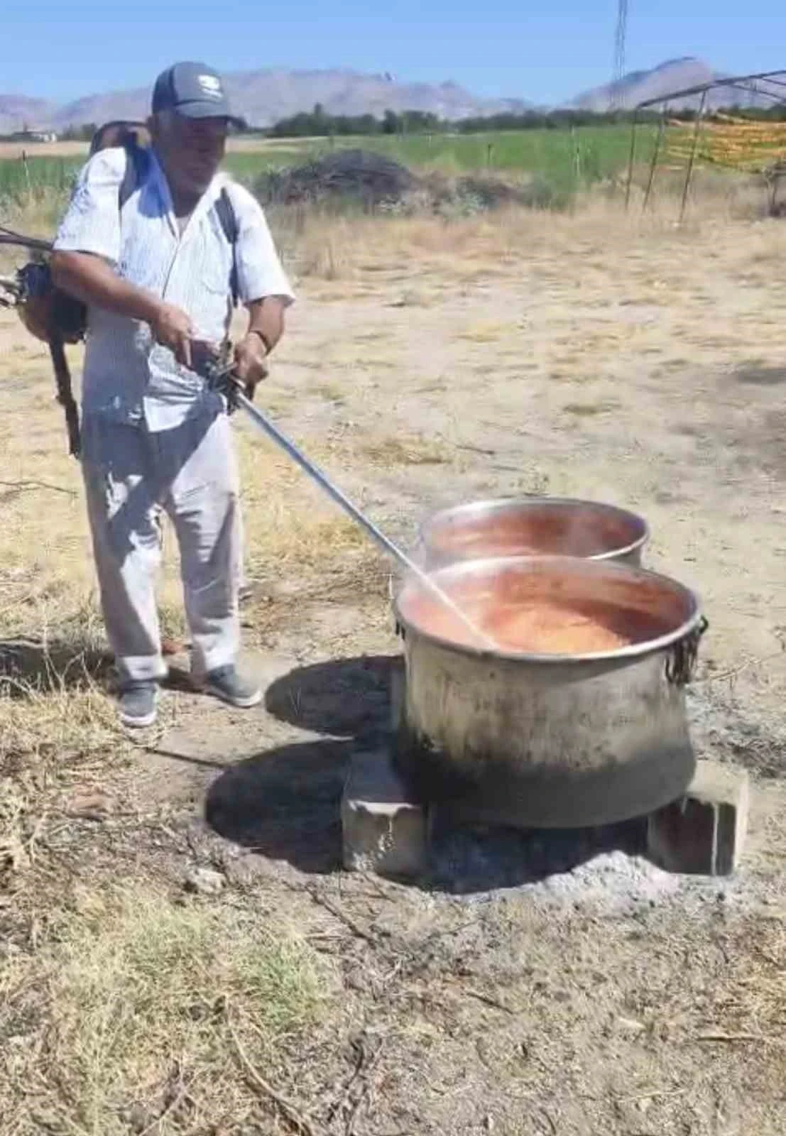 Elazığ’da bir şahıs, kazanda kaynayan domates salçasını ot biçme makinesi ile karıştırdı, ortaya ilginç görüntü çıktı.