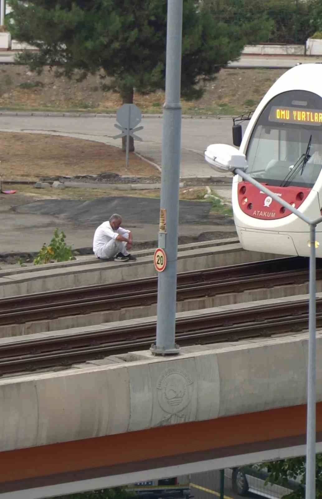 Olay, İlkadım ilçesinde Belediyeevleri ile Samsunspor istasyonları arasında bulunan ve yalnızca tramvayların geçtiği üst geçitte meydana geldi. Edinilen bilgiye göre, kimliği öğrenilemeyen bir erkek şahıs, tramvay üst geçidine çıkarak rayların ortasında müzik dinlemeye başladı. Bu sırada hattı kullanan tramvay sürücüsü, raylarda bir kişinin olduğunu görünce acil fren yaparak tramvayı durdurdu. Şahsın can güvenliğini tehlikeye atmaması için sürücü, kapıları açarak onu tramvaya aldı.