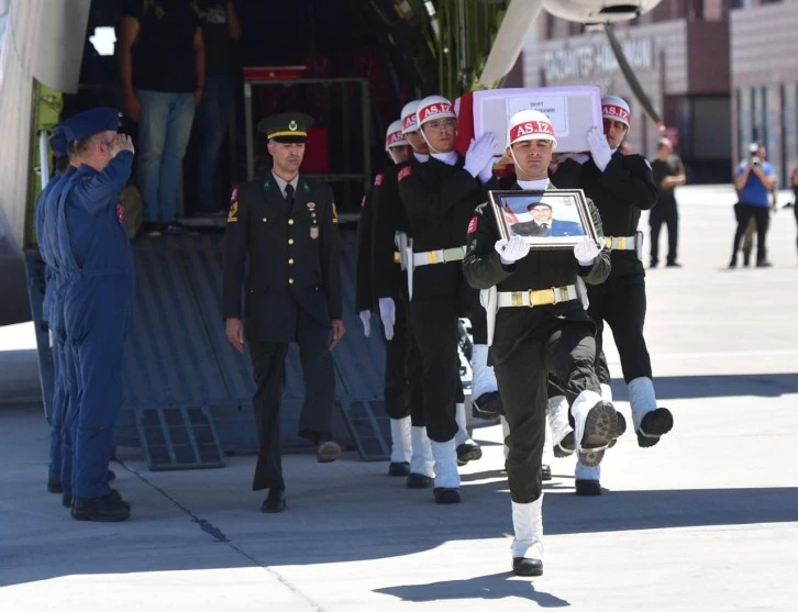 Irak'ın kuzeyindeki Pençe-Kilit Operasyonu bölgesinde, bölücü terör örgütü mensuplarının taciz ateşi sonucu yaralanan ve kaldırıldığı hastanede şehit olan Piyade Uzman Onbaşı Uğur Özdemir için Gaziantep Havalimanı’nda karşılama töreni düzenlendi.