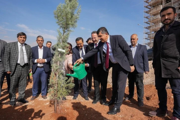 Yapılan konuşmaların ardından fidanlar dikilerek can suları verildi.