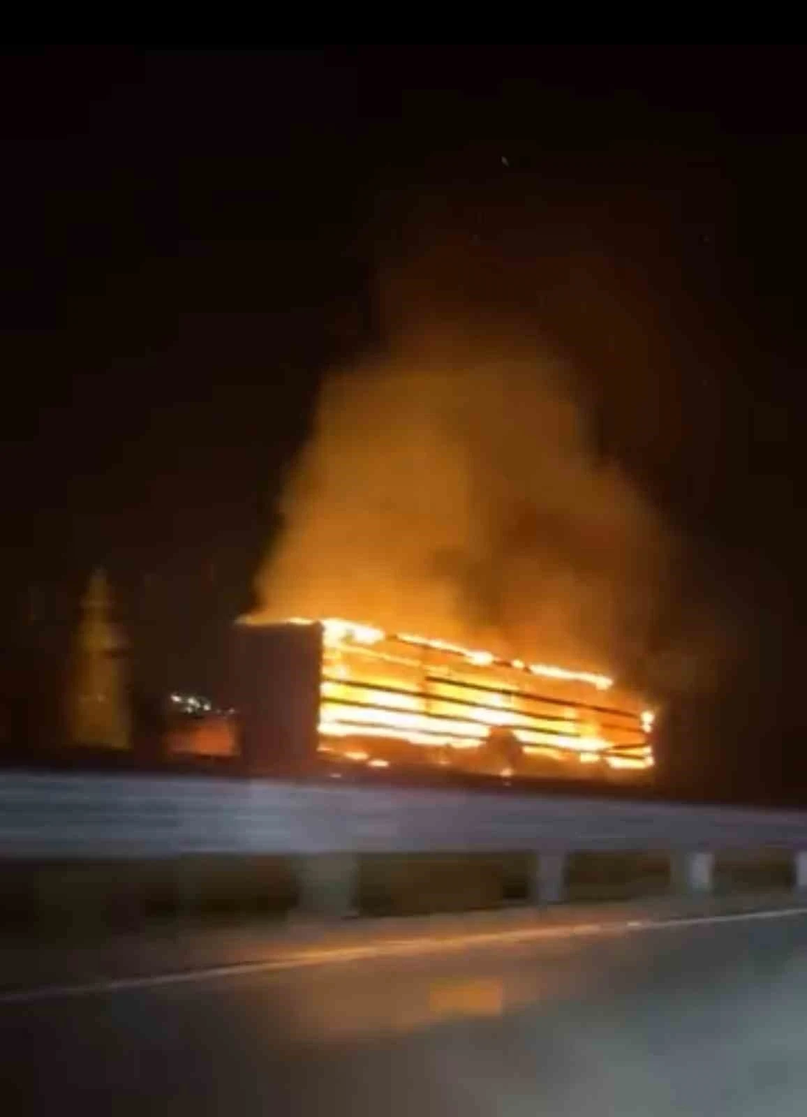 Edinilen bilgiye göre, 61 AB 261 İran plakalı tır ile Organize Sanayi Bölgesi kavşağı istikametine ilerleyen A.H., aracın arka lastik kısmından yükselen dumanı fark etti. Bir süre sonra yanmaya başlayan lastiğin alevleri dorsenin alt kısmına sıçradığını gören sürücü, tırı durdurarak çekiciyi dorseden ayırdı. Tır dorsesinde kompresör ve çeşitli makinelerin bulunduğu öğrenildi. Olay yerine çağrılan itfaiye ekipleri alevlere müdahale ederek yangını kontrol altına aldı. Yangında dorsede maddi hasar oluştu.