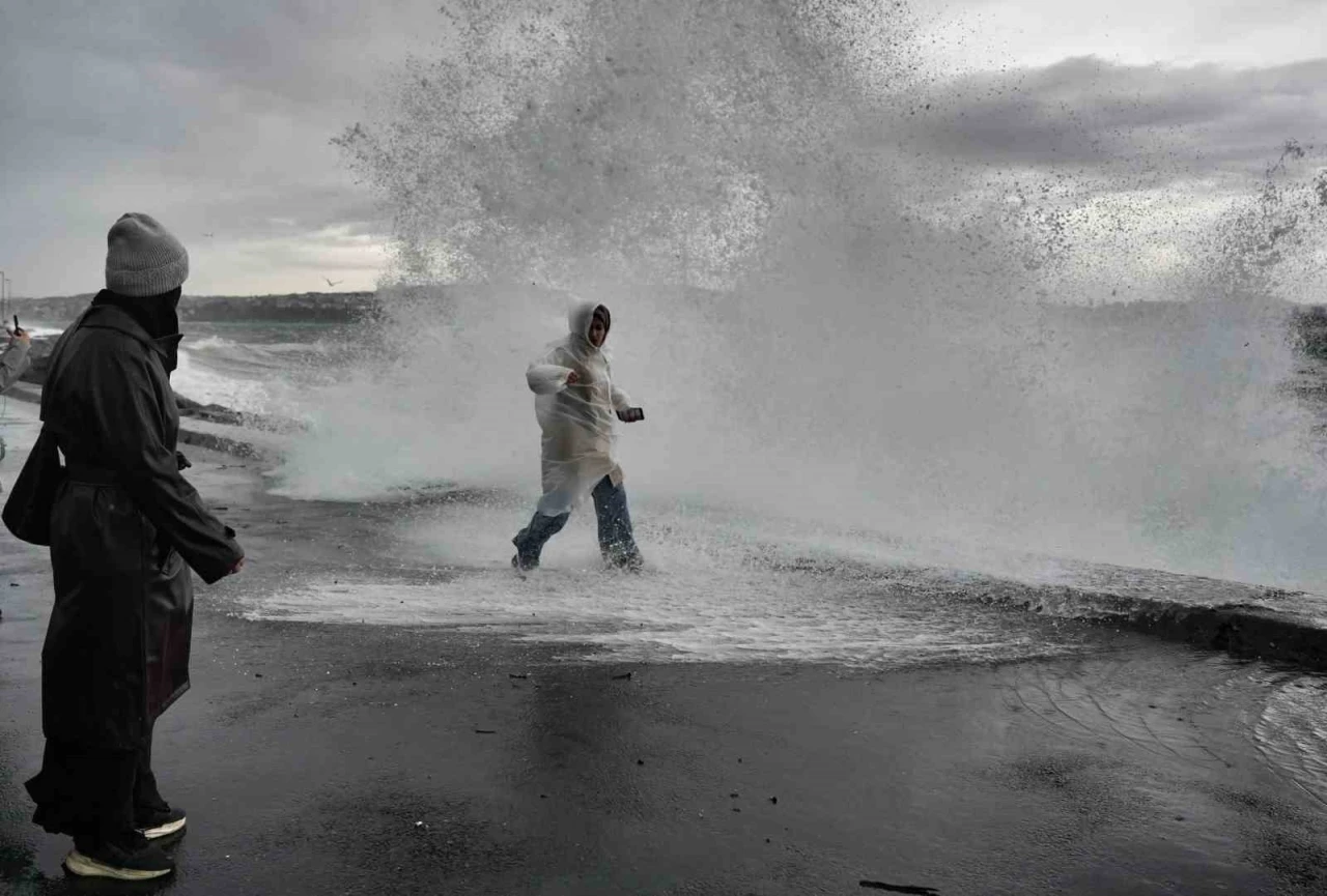Marmara Bölgesi genelinde etkili olan şiddetli lodos, İstanbul’da yaşamı olumsuz etkilemeye devam ediyor. Gece saatlerinde başlayan ve zaman zaman saatte 80 kilometre hıza ulaşan lodos nedeniyle sahil kesimlerinde dalgalar etkisini artırdı. Fatih’te sahil boyunca yürüyüş yapan vatandaşlar rüzgar ve dalgalar nedeniyle zor anlar yaşarken, zaman zaman tehlikeli görüntüler oluştu. Etkili olan şiddetli lodosa aldırış etmeyen vatandaşlar cep telefonu ile fotoğraf çekme yarışına girdi. Bazı vatandaşların ise kıyıya vuran dev dalgalar nedeniyle ıslandığı görüldü.