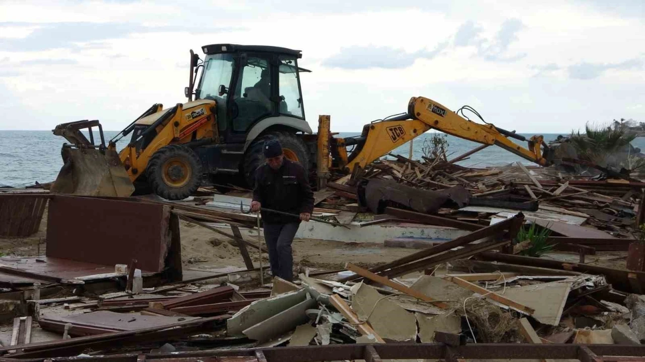 Antalya’nın Manavgat ilçesinde Side büyük plajda bulunan 15 günübirlik işletme Kültür ve Turizm Bakanlığı’nın yıkım kararı doğrultusunda işletme sahipleri tarafından yıkıldı.