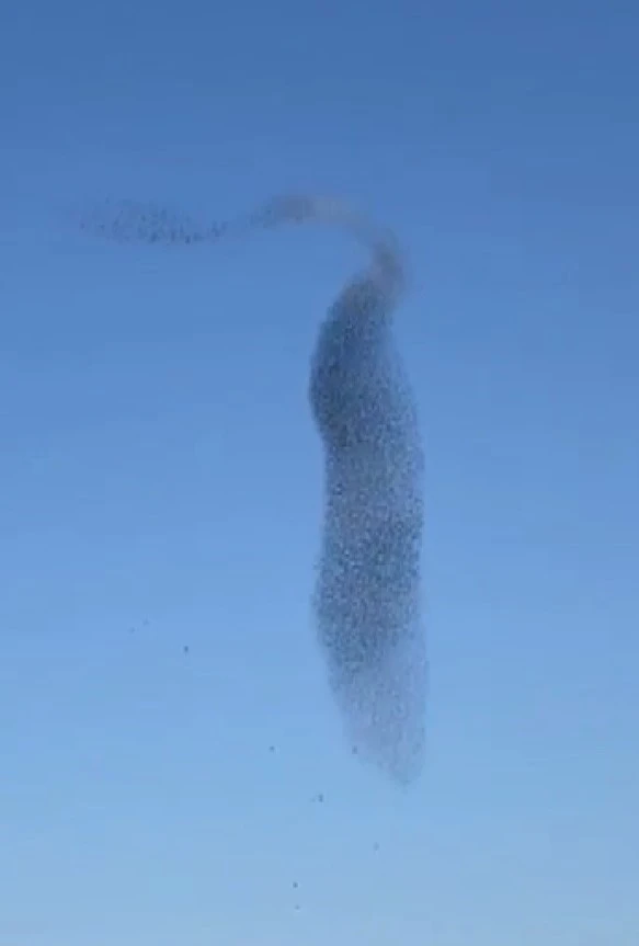 Sığırcık kuşlarının gökyüzündeki dansı hayran bıraktı