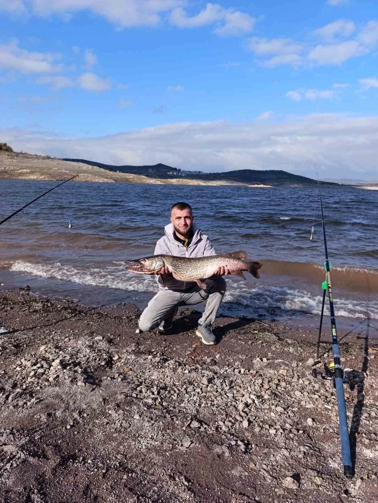 Balıkesir’in Sındırgı ilçesinde bulunan Çaygören Barajı’nda balık avına çıkan profesyonel olta balıkçısı Hasan Gökçe ve arkadaşı, unutulmaz anlar yaşadı. Gökçe’nin oltasına tam 8 kilo 750 gram ağırlığında dev bir sazan balığı takılırken, o anlara doğadan sürpriz bir misafir de eşlik etti.