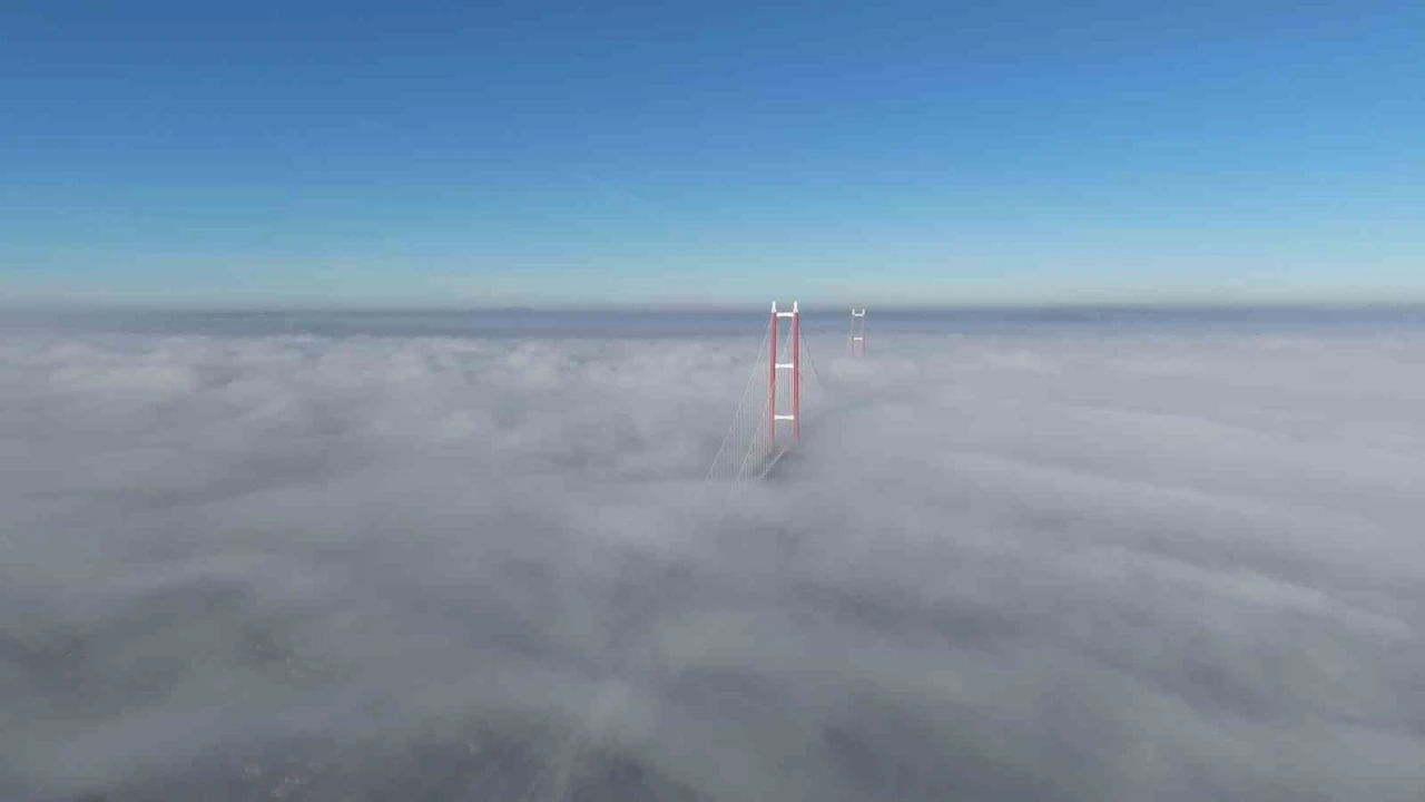 Çanakkale Boğazı yoğun sis sebebiyle transit gemi geçişlerine kapatıldı. 2023 metre ile dünyanın en uzun orta açıklığa sahip asma köprüsü olan 1915 Çanakkale Köprüsü’nün sis bulutu altındaki hali ise dron ile görüntülendi. Sis bulutu geçişi sırasında 1915 Çanakkale Köprüsü görüntüsüyle hayran bıraktı.