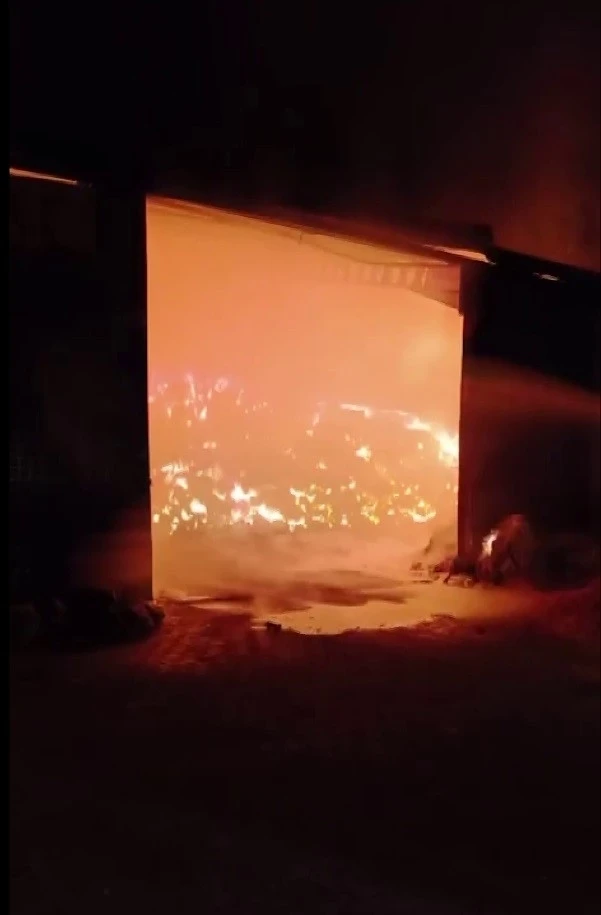 Sivas’ın Şarkışla ilçesinde yem deposunda çıkan yangında 20 bin balya yanarak kullanılamaz hale geldi. Yangın anı cep telefonu kamerasına yansıdı.