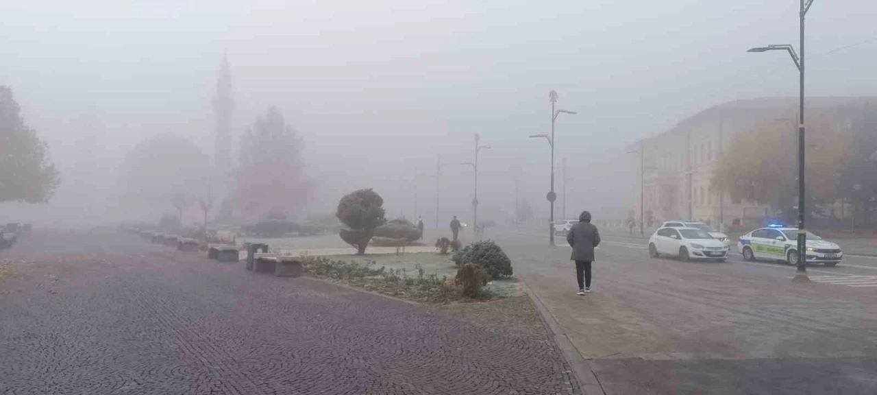 Sivas’ta sıcaklıkların eksi 3 dereceye düşmesiyle birlikte kent, görüş mesafesini neredeyse yok eden yoğun sis örtüsünün altında kaldı.