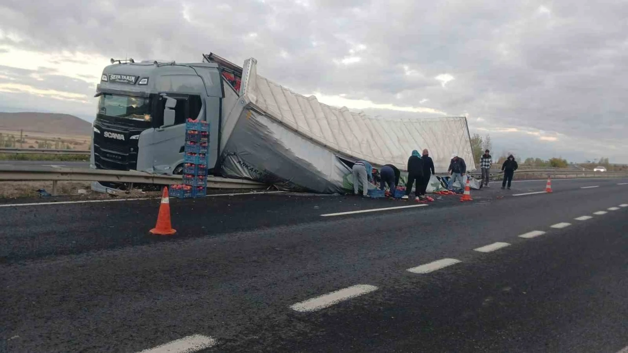 Eskişehir’in Sivrihisar ilçesinde sebze yüklü tırın devrilmesi sonucu meydana gelen trafik kazasında araç sürücüsü hafif yaralandı.