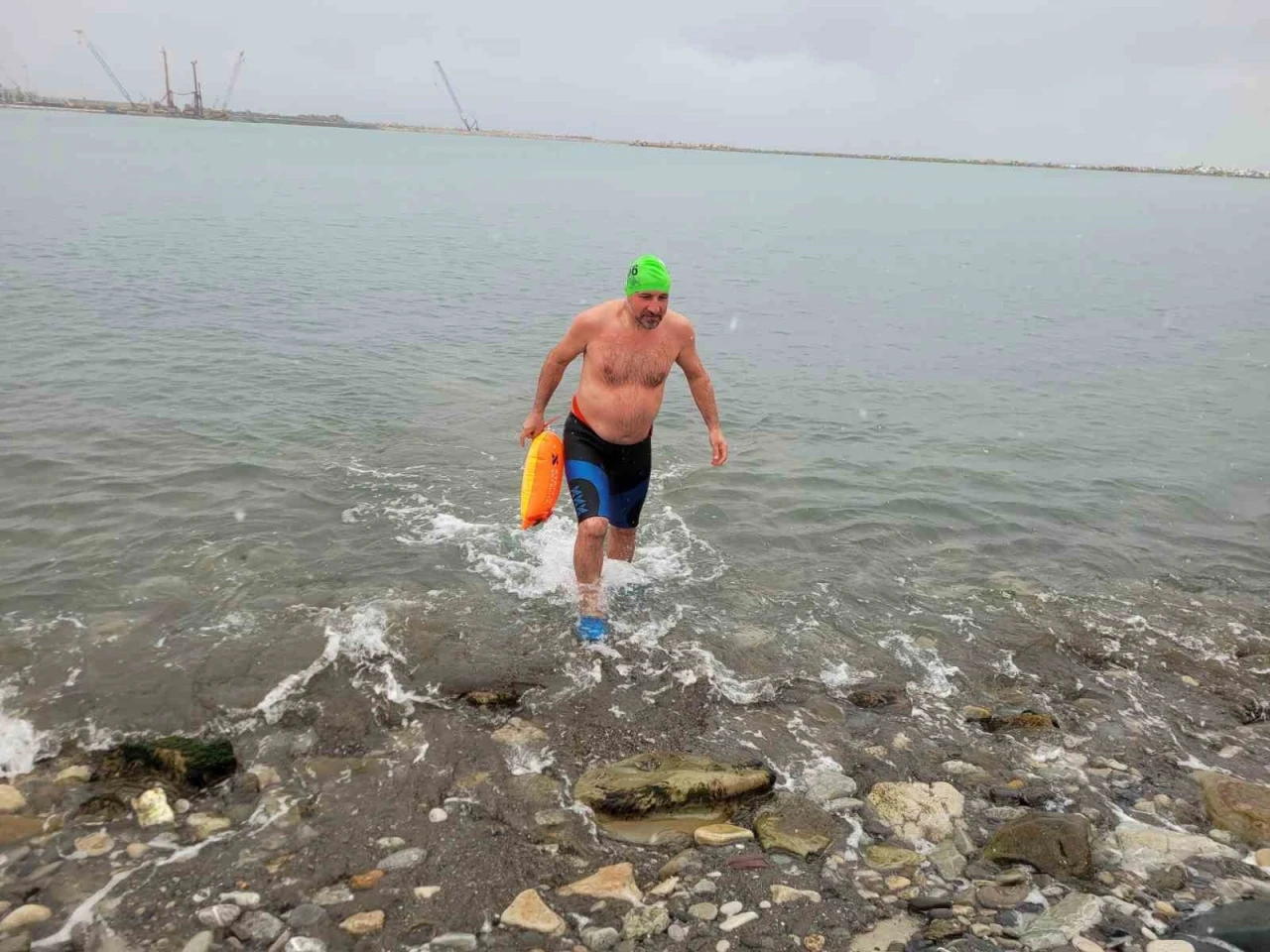 İnebolu ilçesinde yaşayan 54 yaşındaki Saim Gürel, kar yağışı altında denize girerek yüzdü. Hava sıcaklığının 1, deniz suyu sıcaklığının ise 6 derece olduğu havaya aldırış etmeyen Gürel, kalın kıyafetler giymiş arkadaşlarının gözü önünde önce karların üzerine uzandı, ardından denize girerek kulaç attı.