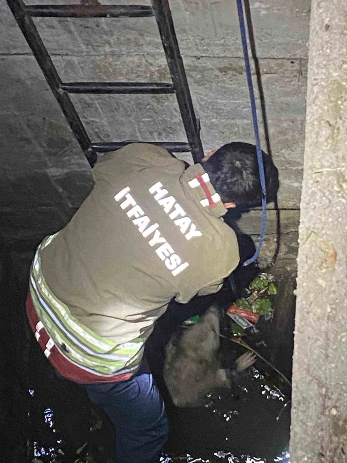 Hatay’da su dolu kuyuya düşerek mahsur kalan 2 köpeği itfaiye kurtardı.