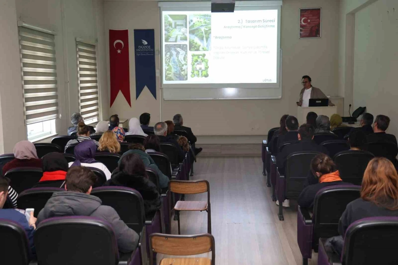 Düzce Üniversitesi Orman Fakültesi tarafından "21 Mart Dünya Ormancılık Günü Etkinlikleri" kapsamında düzenlenen "Tasarımdan Uygulamaya" başlıklı konferans, gerçekleştirildi.