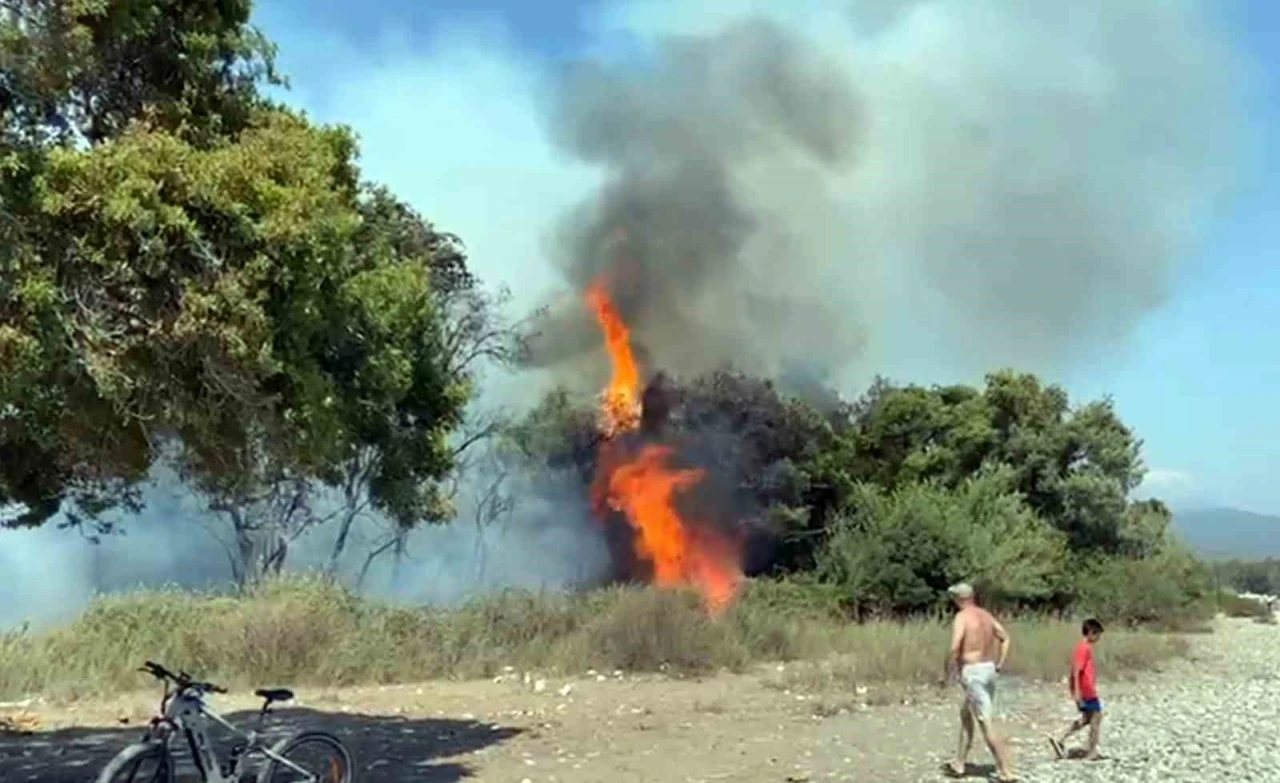 Fethiye’nin günübirlik tatil koylarından Karaot Aymaz sahilinde iki gün önce sahile yakın bölgede orman yangını çıktı. Yangına ilk müdahale sahilde bulunan tatilciler elleri ile toprakları alevlerin üzerine atması ile başladı.