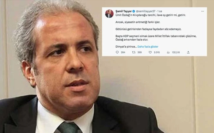 Sosyal medya hesabı üzerinden yaptığı paylaşımda Tayyar, ‘’Ümit Özdağ’ın Kılıçdaroğlu tercihi, ilave oy getirir mi, getirir. Ancak, siyasetin aritmetiği farklı işler. Götürüsü getirisinden fazlaysa faydadan söz edemeyiz. Başta HDP seçmeni olmak üzere Millet İttifakı tabanındaki çözülme, Özdağ artısından fazla olur. Dimyat’a pirince giderken evdeki bulgurdan olmak gibi’’ ifadelerini kullandı.