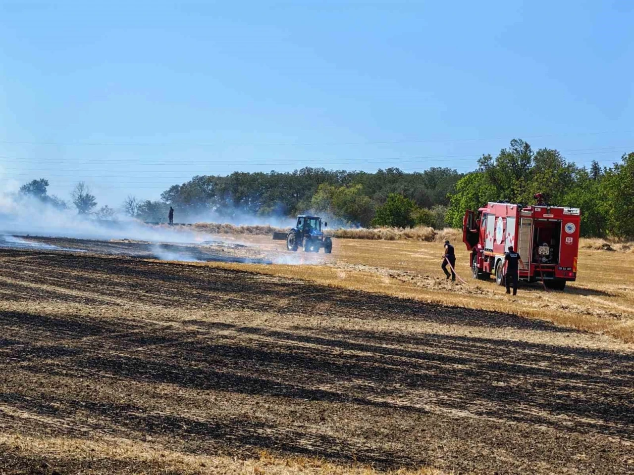 Tekirdağ’ın Malkara ilçesinde çıkan yangında 50 dönümlük biçilmiş buğday tarlası yandı.