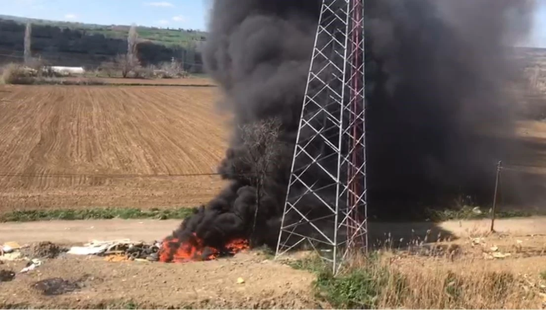 Tekirdağ’ın Süleymanpaşa ilçesinde alev alan atık lastikler gökyüzünü siyah dumanla kapladı.