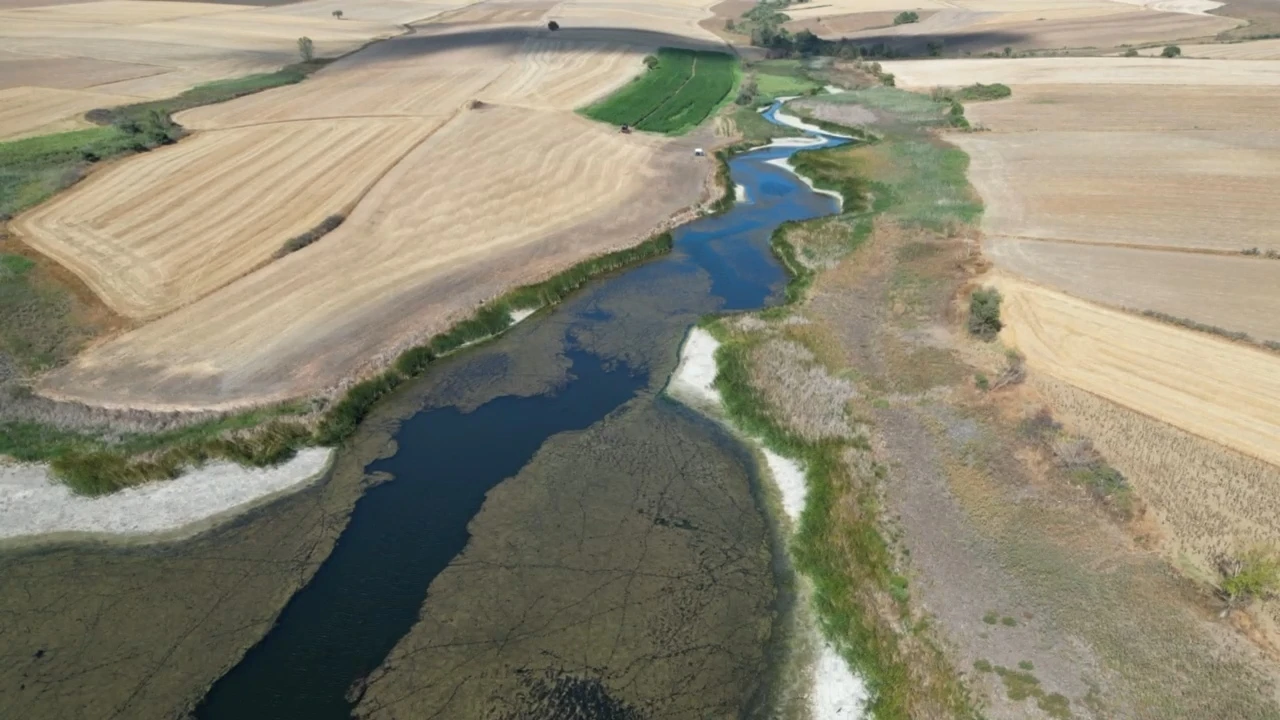Tekirdağ Sarılar Göleti’nde su seviyesi kuraklık ve yüksek sıcaklıkların etkisiyle belirgin seviyede düştü.