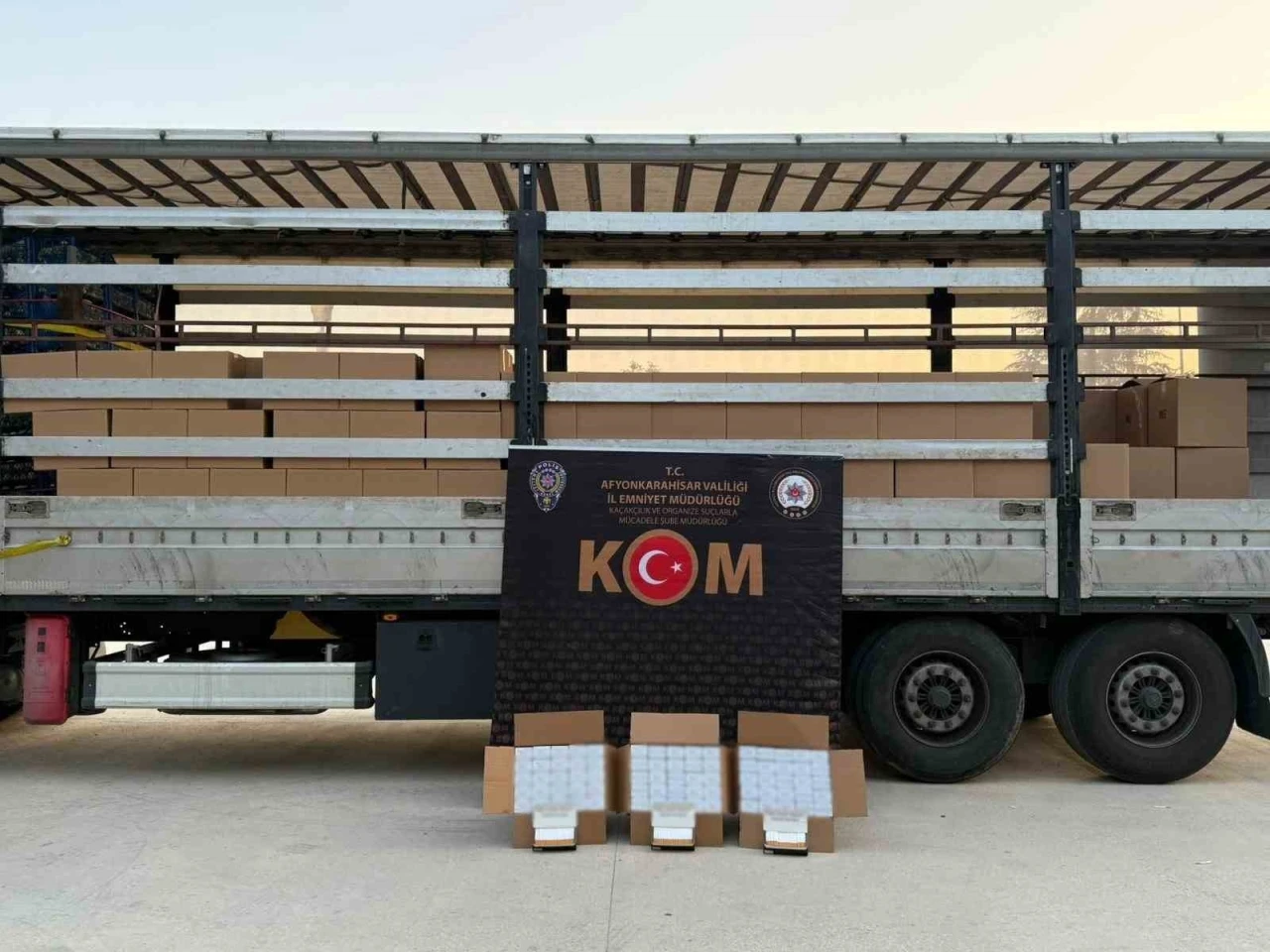 Afyonkarahisar’da polisin durdurduğu tırda 4 milyon 300 bin adet bandrolsüz boş makaron ele geçirilirken, 1 şüpheli hakkında adli işlem başlatıldı.