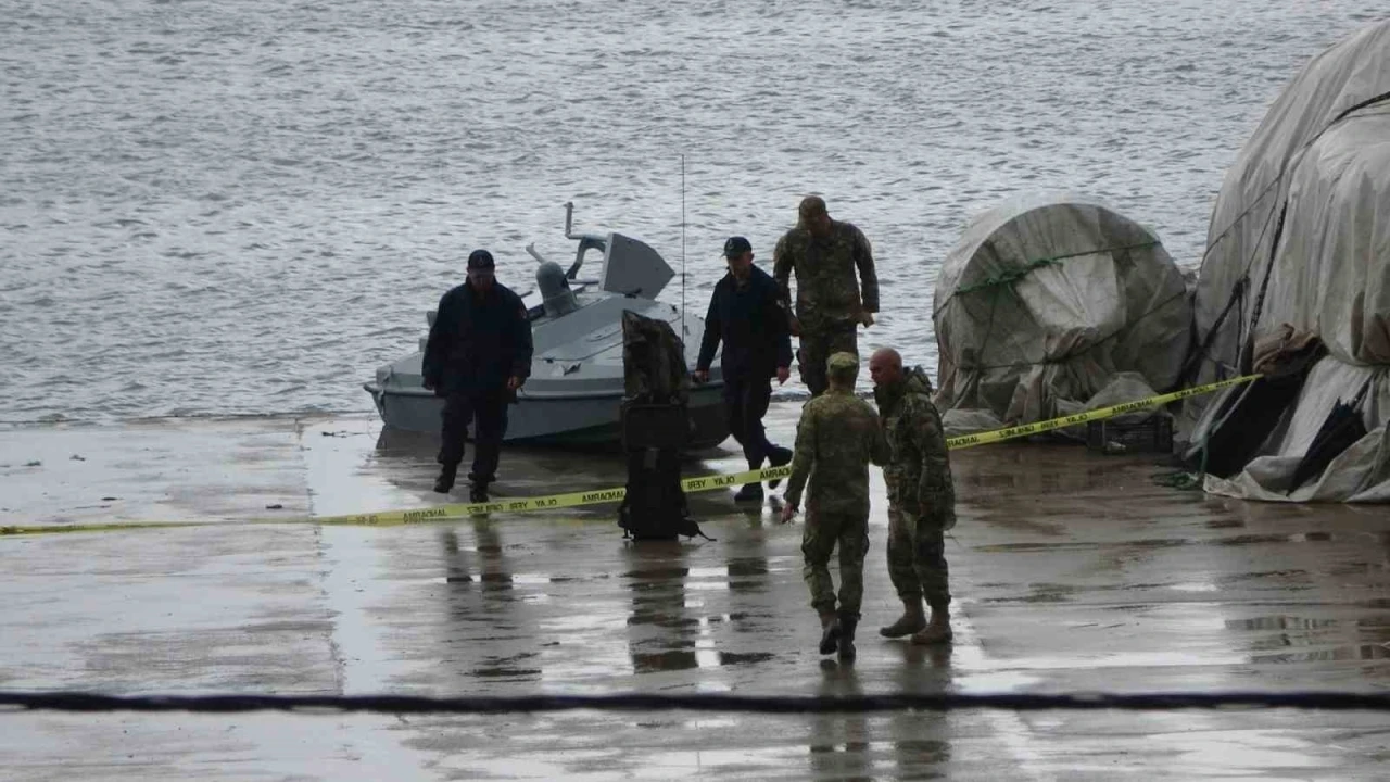 Trabzon’da dün Yoroz Limanı’ndan hamsi avı için denize açılan Bozokoğlu Balıkçılık’a ait balıkçı teknesi, gece Akçakale açıklarında kıyıdan 800 metre mesafede radarda bir cisim tespit etti. Fırtına nedeniyle açığa sürüklenmiş küçük balıkçı teknesi sandıkları cismi teknelerine vinçle çektiklerinde askeri amaçla yapılmış bir insansız deniz aracı olduğunu anlayan tekne sahipleri, Sahil Güvenlik ekiplerine bilgi vererek Yoroz Limanı’na getirdi. Sahil Güvenlik ekipleri tarafından teslim alınan Ukrayna’ya ait olduğu bildirilen bomba yüklü insansız deniz aracı nedeniyle limanda geniş güvenlik önlemi alınırken, Deniz Kuvvetleri Komutanlığı’ndan uzman SAS ekipleri istendi. SAS ekipleri bugün öğleden sonra Trabzon’a ulaşarak insansız deniz aracı üzerinde incelemelerine başladı.