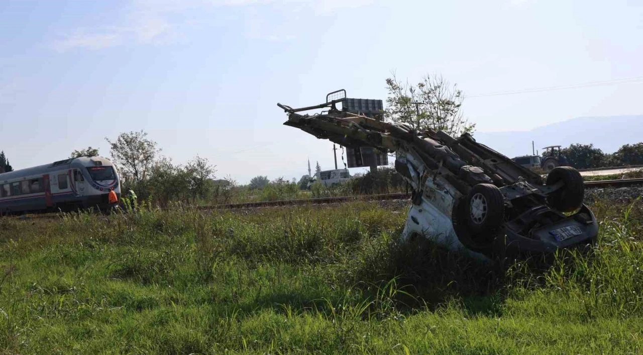 Aydın’ın Efeler ilçesi yakınlarında meydana gelen kazada yolcu treninin çarptığı kamyonet paramparça oldu. Görenleri şaşkına çeviren kazada yaklaşık 50 metre sürüklendikten sonra incir bahçesine savrulan kamyonetin sürücüsü yaralı olarak kurtuldu.
