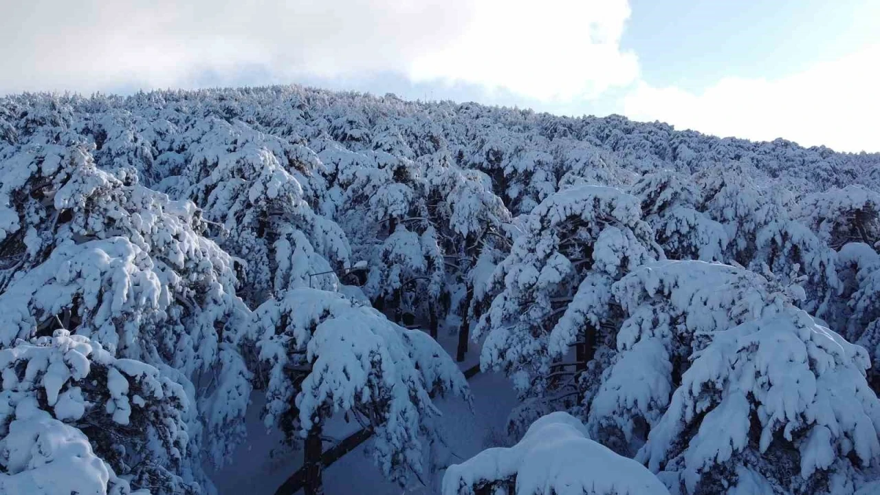 Yoğun kar yağışıyla birlikte doğa ve şehir siluetinin birleştiği Çamlık Milli Parkı, kış aylarında da Yozgat’ın önemli cazibe merkezlerinden biri olmayı sürdürüyor.