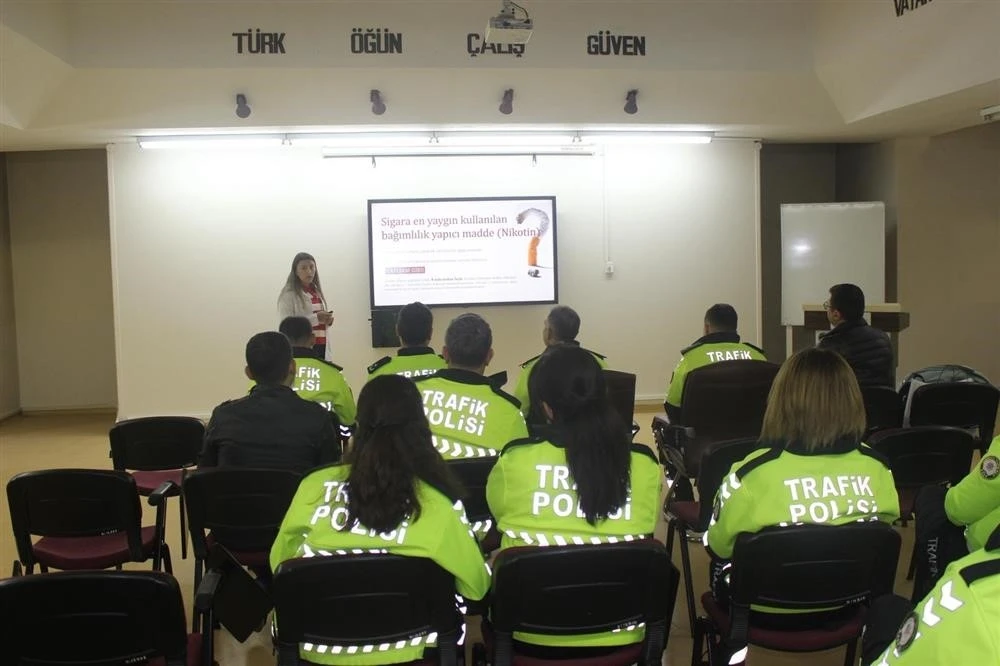 2024-2028 Tütün Kontrolü Strateji Belgesi ve Eylem Planı kapsamında, ’A2. Sigarayı Bırakma’ başlığı altında yer alan ’3.4. Kamu kurumlarında sigara bırakma kampanyasının düzenlenmesi’ faaliyeti çerçevesinde önemli bir adım atıldı. Toplumda tütün kullanımını azaltmak ve bireylerin sigarayı bırakma süreçlerini desteklemek amacıyla Eskişehir Trafik Polis Eğitim Merkezi Müdürlüğü’nde Dr. Pakize Gizem Topçu tarafından ’Tütün ve Tütün Ürünlerinin Zararları’ konusunda bilgilendirme eğitimi gerçekleştirildi. Eğitimin ardından katılımcılara Yerinde Sigara Bırakma Danışmanlığı Hizmeti kapsamında poliklinik hizmeti verildi ve bireylerin sigarayı bırakma yolculuğu desteklendi.